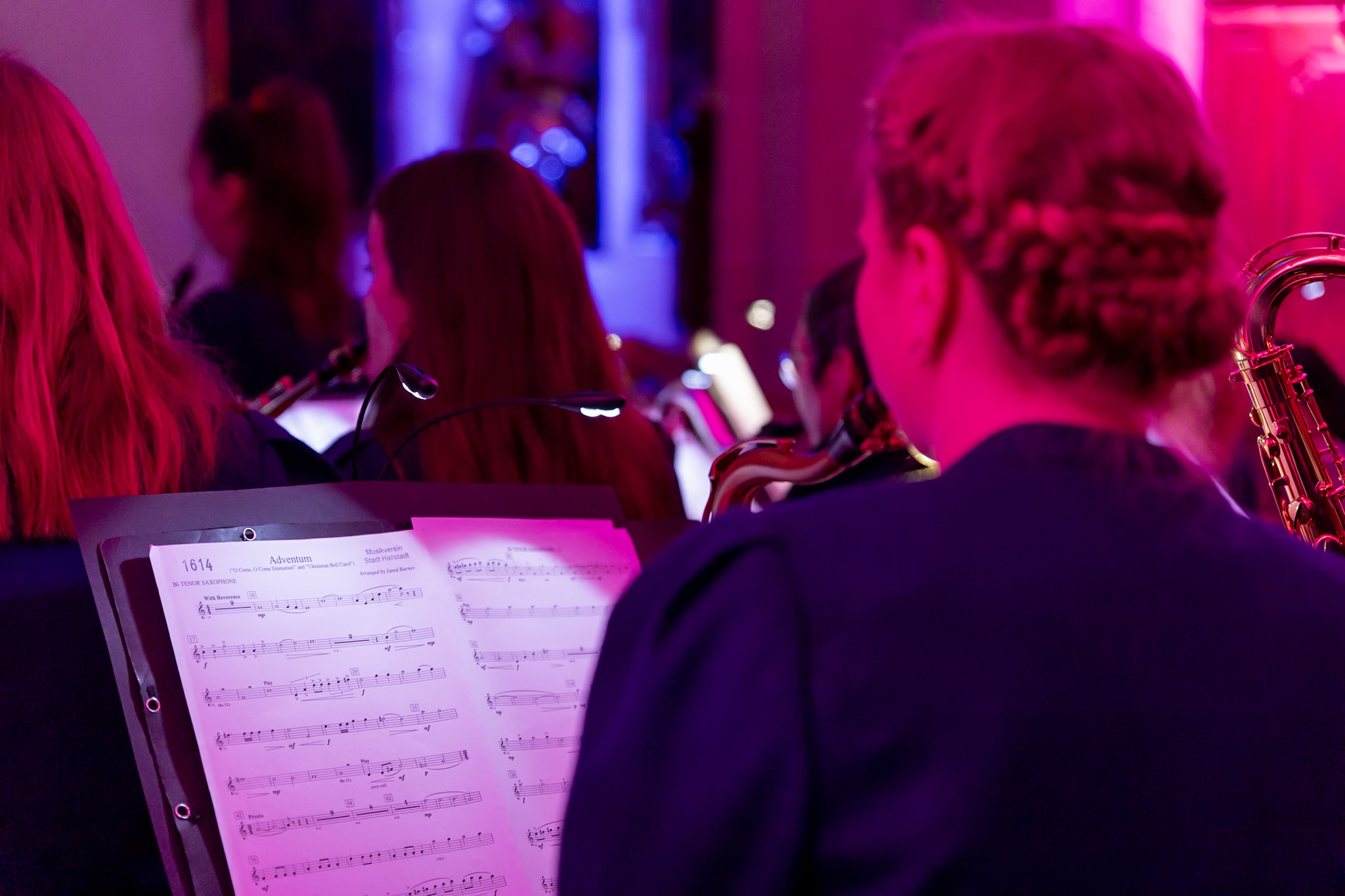 das spätere Erlernen eines Holz-, Blech- oder Schlaginstrumentes.